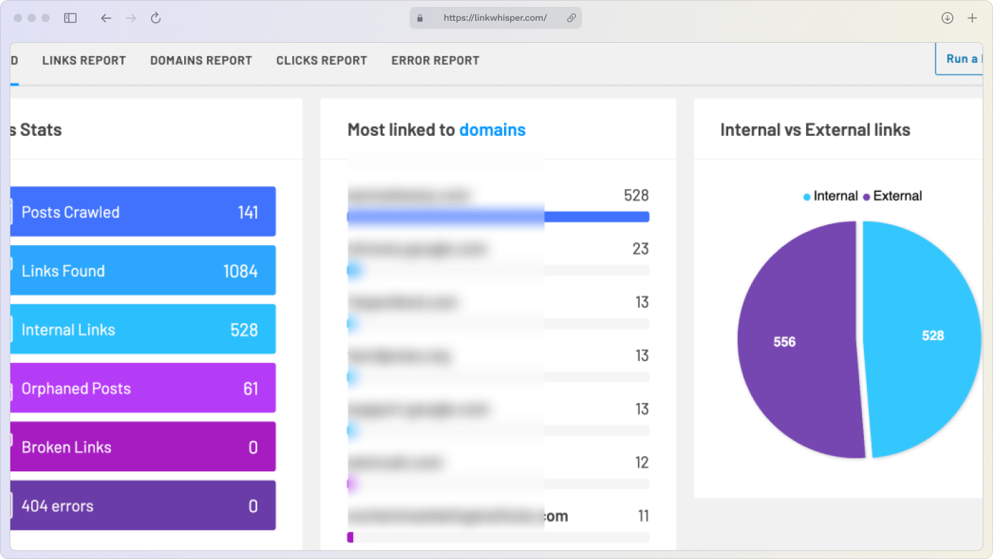 Linkilo empowers you with advanced features and unparalleled insights into your internal linking strategy. Through comprehensive reporting, you’ll gain deep understanding of your anchor text usage, nofollow tags, sponsored links, and more. Our user-friendly dashboard presents you with actionable data that leads to informed decisions.